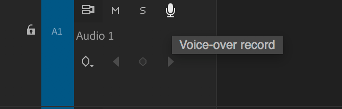选择默认输入后,按OK退出音频硬件首选项面板。 录制画外音在您的时间线上,您现在应该会看到旁白录制按钮。这是一个小型麦克风,位于音轨上静音和独奏按钮的右侧。