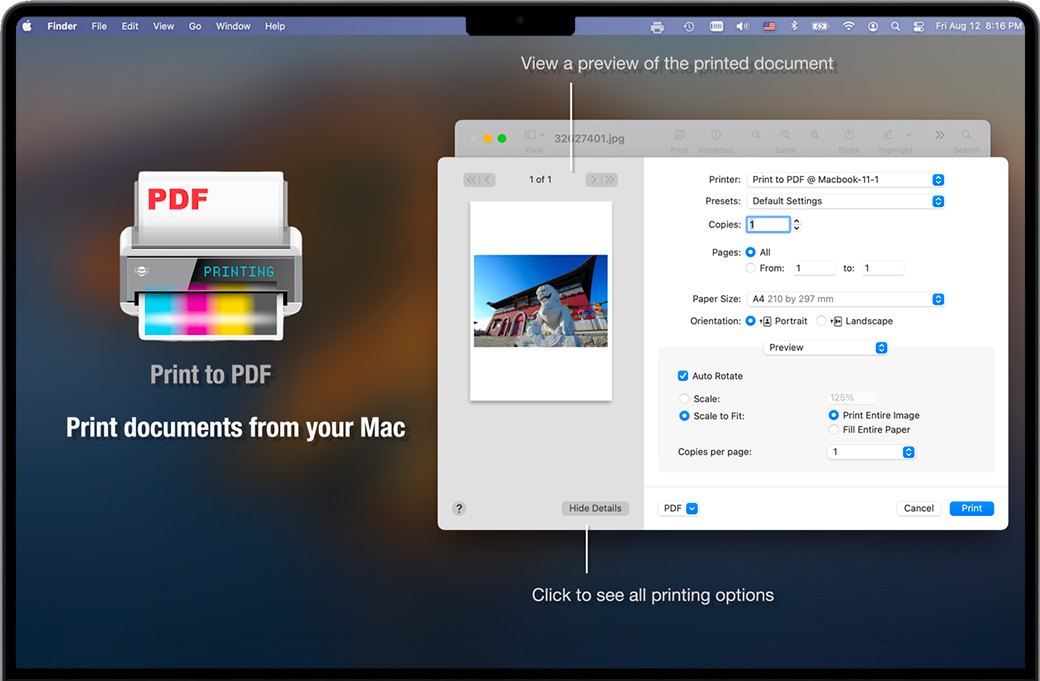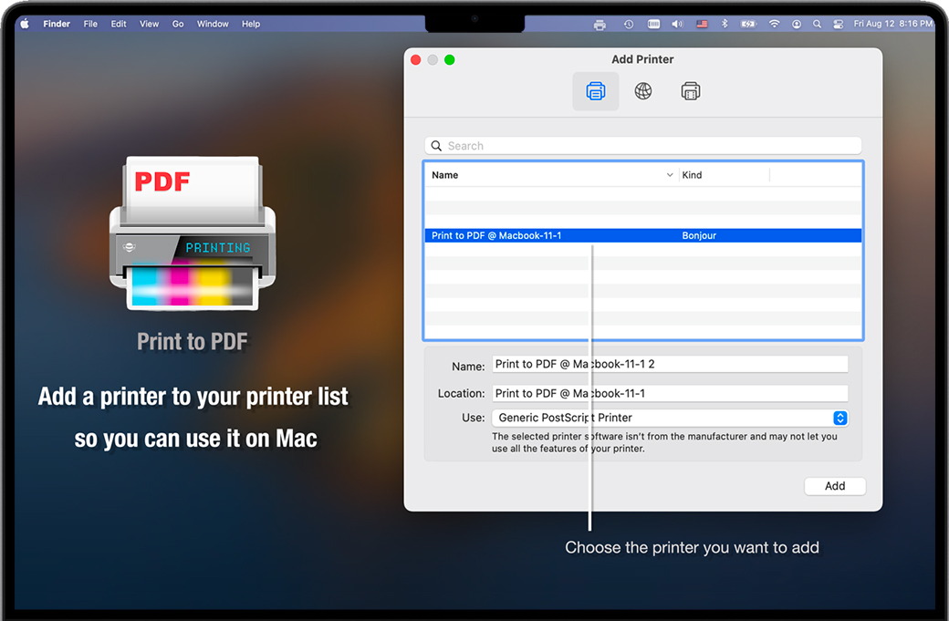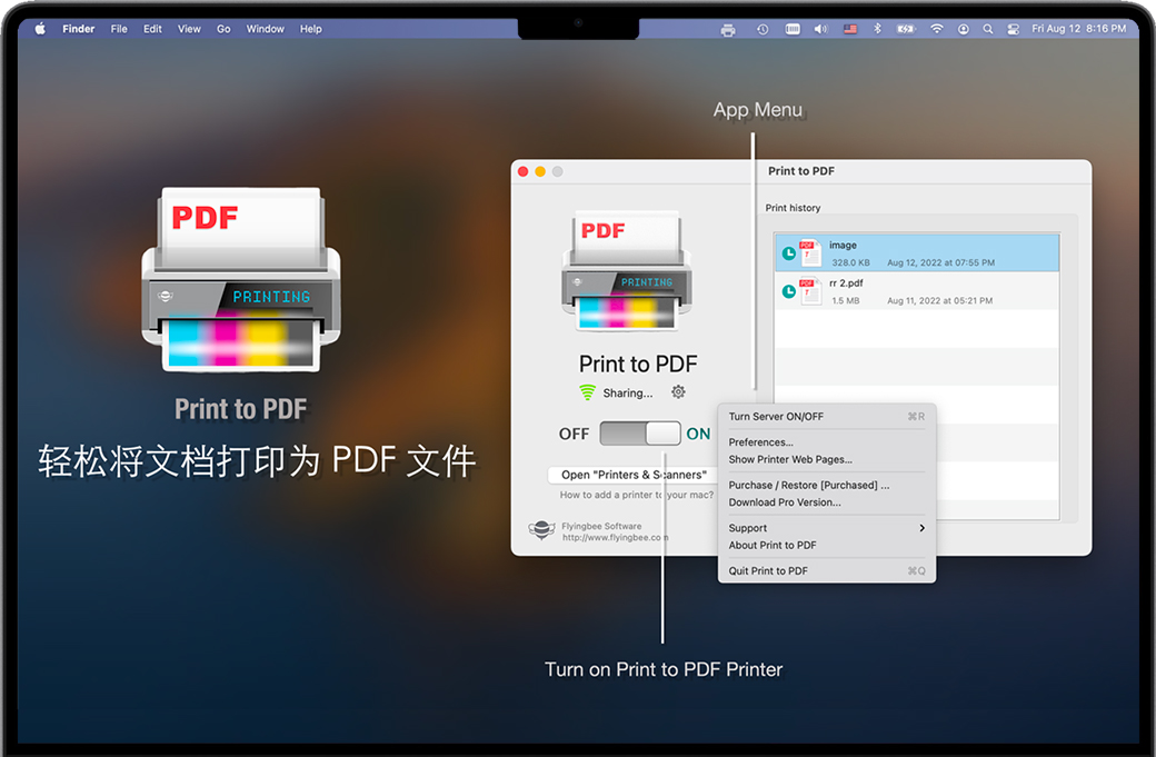 Print to PDF for Mac 在网络上作为一个小型无线打印机服务器运行,因此您可以在系统偏好设置中将其添加到我们的 mac,并将任何文档直接打印为 pdf。
