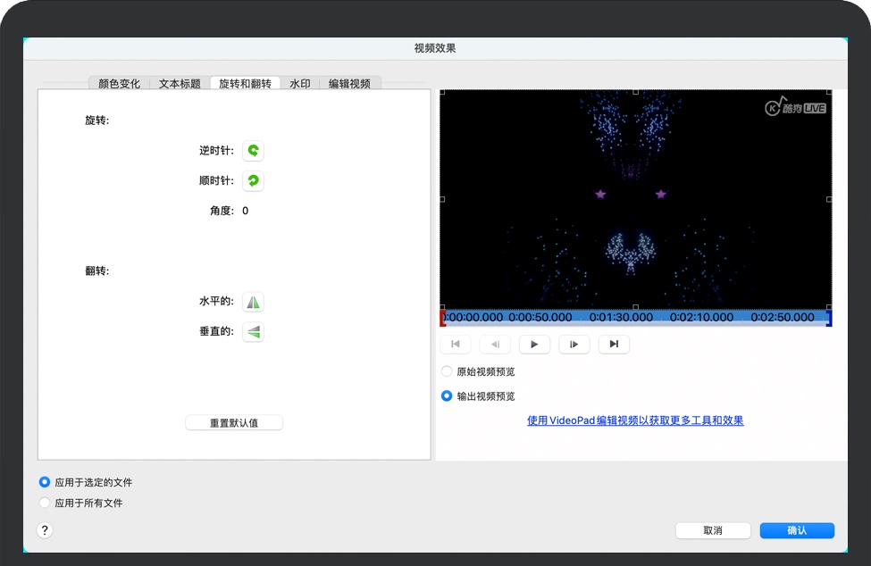 添加水印、文字叠加等效果,或将视频旋转到正确的方向