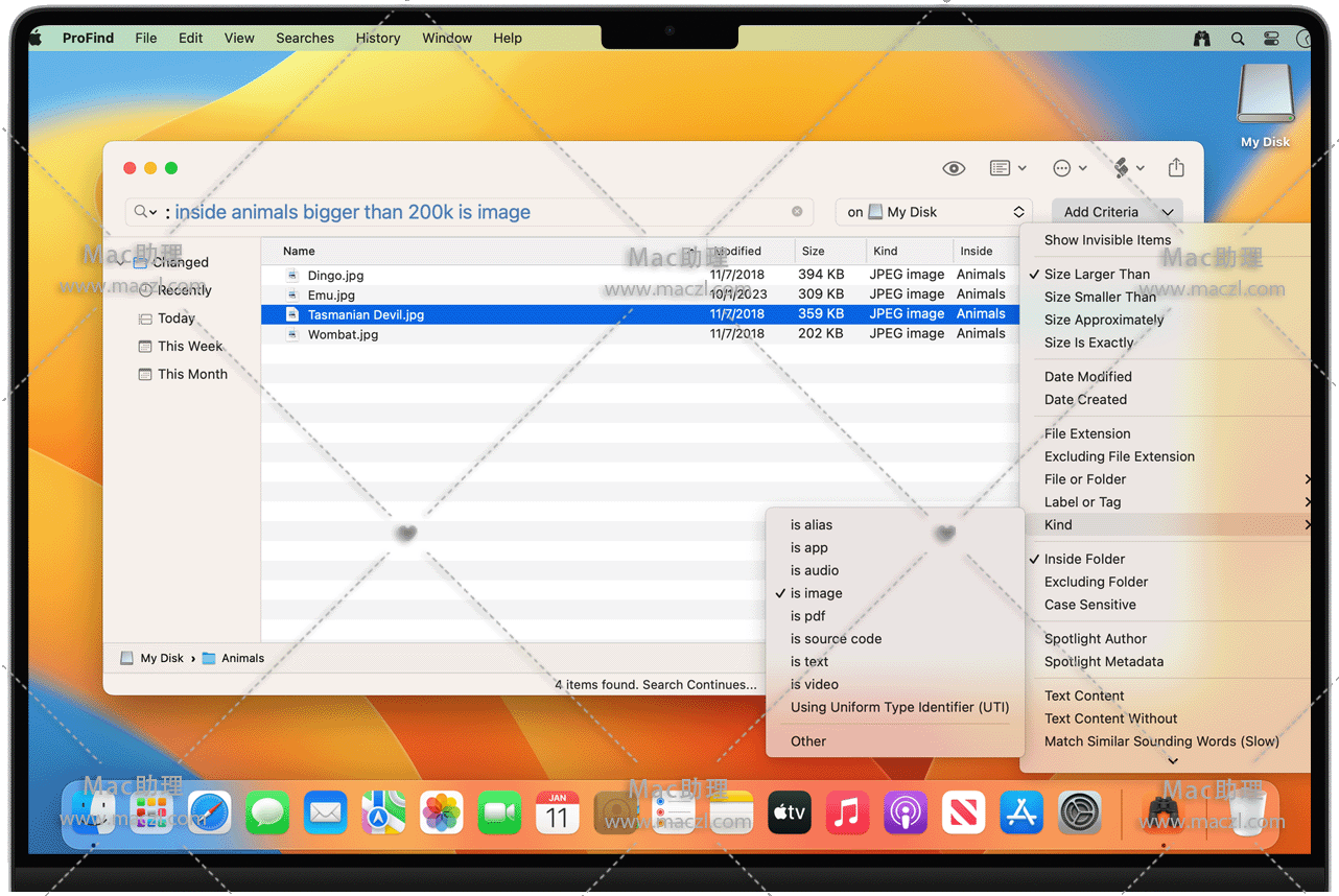 | ProFind支持创新的自然语言查询、应用程序启动、空间磁盘浏览、隐藏位置搜索、Finder 集成、搜索保存、历史记录、脚本等,它是您唯一需要的搜索应用程序。 | ||
