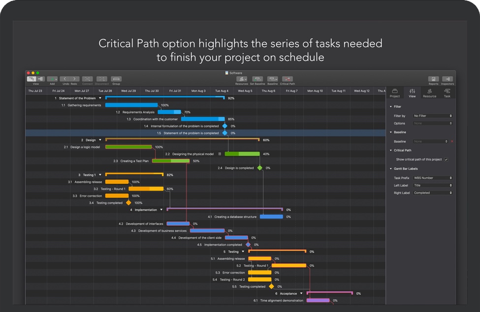 突出显示对项目最后期限有直接影响的重要任务。启用一个开关,在您更改任务时计算关键路径