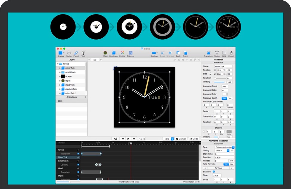 QCode是一种快速,轻巧且功能强大的动画工具,可将矢量绘图和动画转换为Objective C和Swift代码。