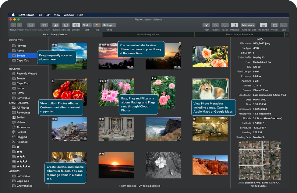 RAW Power® 是所有非 Apple 照片应用中与“访达”、“照片”和 iCloud 集成度最好的一款,而且还提供先进的 RAW 编辑和评级等众多功能。