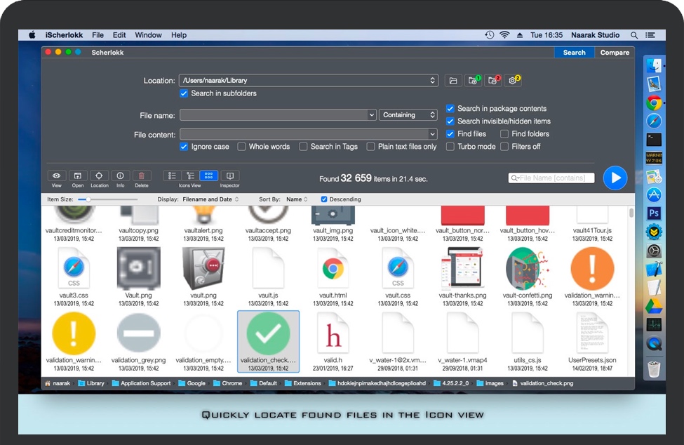 搜索的文件是隐藏的还是系统的都没有关系。iScherlokk甚至不需要通过macOS对该文件进行索引。