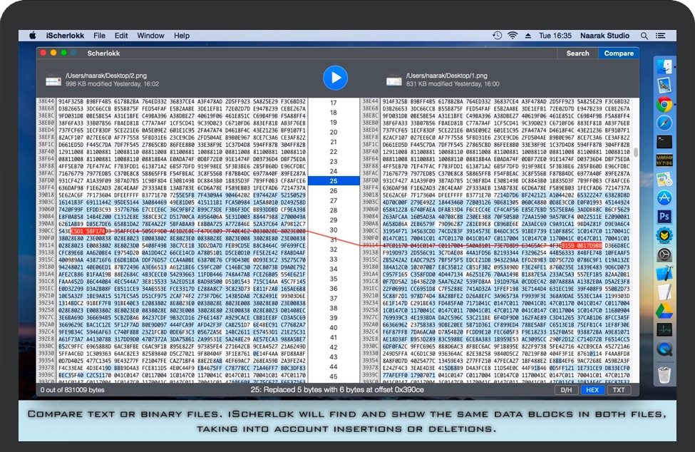 iScherlokk可以比较任何文件(文本或二进制)并显示它们之间的差异,并考虑插入或删除的情况。它使用复杂的算法在两个文件中查找相似的块,并将它们显示为差异列表。试试看,您会喜欢的!