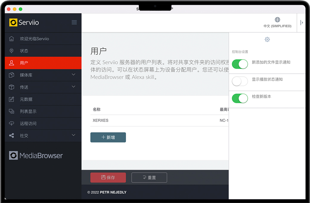 Serviio Pro for Mac 是一款DLNA媒体服务器。它允许您将媒体文件(音乐、视频或图像)流式传输到家庭网络上任何经DLNA认证的渲染器设备(如电视机、蓝光播放器、游戏机)。Serviio基于Java技术,因此可以在大多数平台上运行,包括Windows、Mac和Linux(包括嵌入式系统,如NAS)。