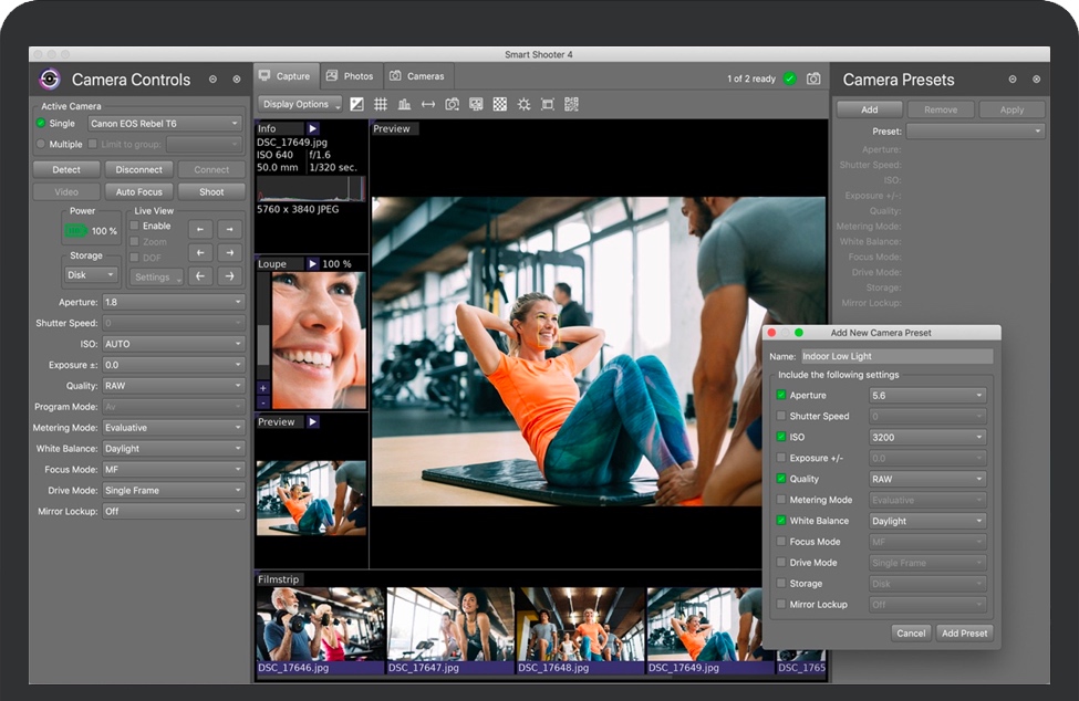 将相机连接到计算机后,您可以继续手动使用它。每次拍摄照片时,Smart Shooter 4都会下载图像并将其显示在屏幕上。