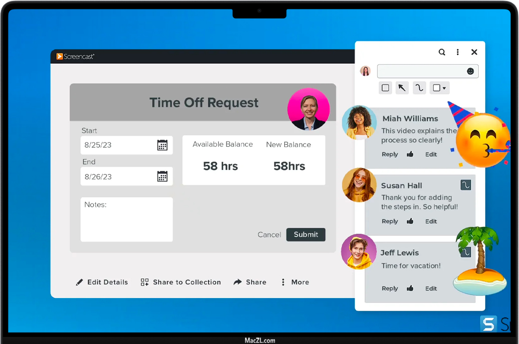 直接上传并共享到PowerPoint,Word,Excel,YouTube,Camtasia等,或直接创建指向屏幕抓取的链接并与任何人共享。