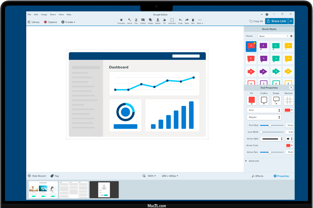 使用专业的标记工具对屏幕抓图进行注释。使用多种预制样式向您的屏幕截图添加个性和专业精神。或者您可以创建自己的。