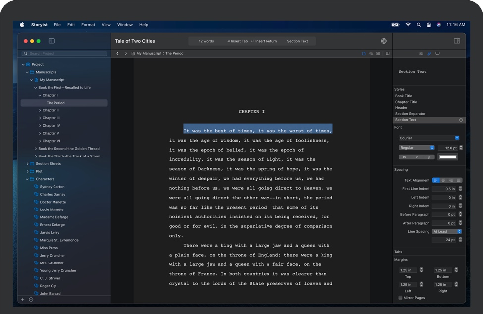 - 制作可提交的手稿和剧本。Storyist提供了一个富文本编辑器,该文本编辑器支持注释,图像,页眉,页脚和样式表,因此您可以创建格式正确的手稿和剧本。Storyist附带手稿和剧本模板,因此您可以专注于写作,而不是格式。