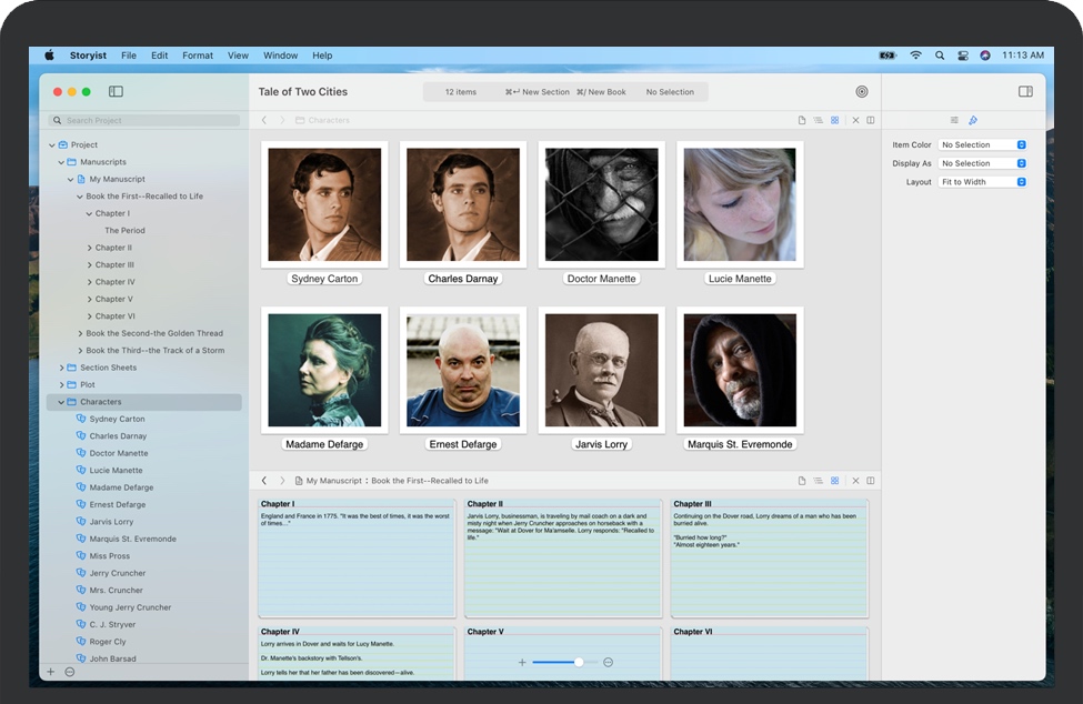 - 从更高层次处理您的故事。使用Storyist,您可以使用索引卡草绘一个故事,然后使用可自定义的情节,角色和设置表对其进行完善。