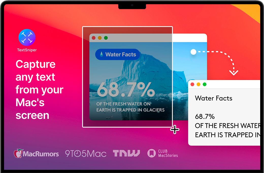 TextSniper for Mac使用直观,可以轻松地从图像,扫描的纸质文档,PDF甚至视频中提取文本。无需培训或特殊技能,非常适合家庭和企业Mac用户。只要需要,就可以从菜单栏中轻松访问它,并且具有简单的用户界面。