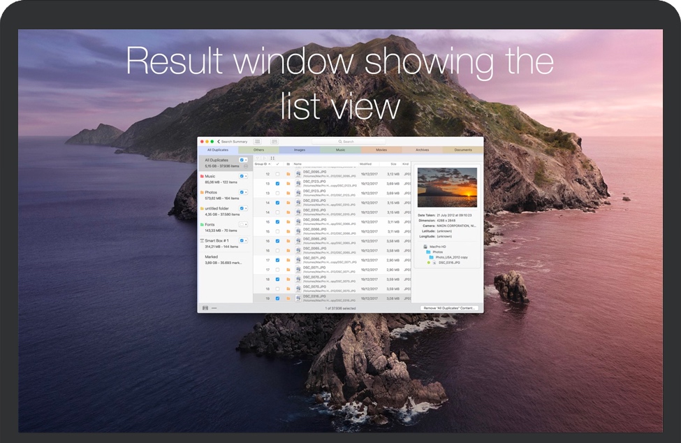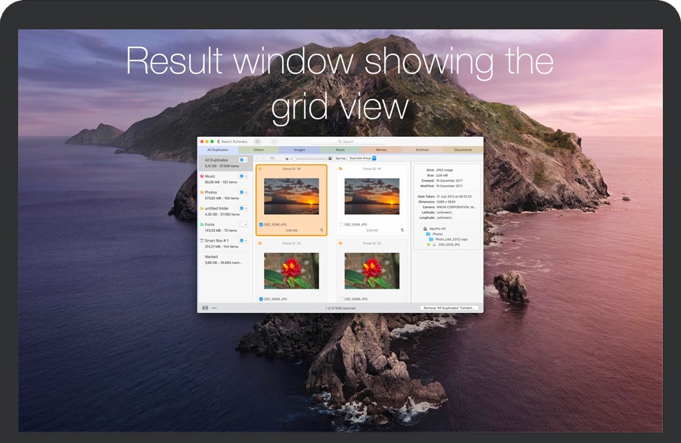 Tidy Up 5 for Mac 是新一代的重复查找器和磁盘整理器。Tidy Up是市场上唯一一款功能齐全的重复去除器。Tidy Up专为需要现代高效工具的专业用户而设计。Tidy Up组织结果,按文件类型(音乐、图像、PDF、文件夹等)分隔找到的项目。新组织基于选项卡分隔,每个选项卡都有其设置,例如智能框、按搜索源分隔、按网格或列表查看等。