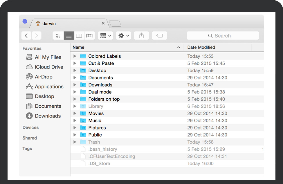 TotalFinder for Mac 是一款多功能、直观的Finder增强插件,专为高级用户和开发人员而设计,使您可以使用双窗格Finder并在Mac的Finder中利用Visor行为。TotalFinder for Mac可以实现Mac系统里多个Finder窗口,具备Finder所有功能的同时,还添加了选项卡,双面板,彩色标签和其他功能,非常实用。