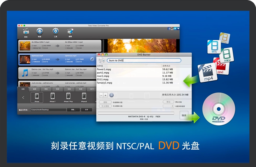 Total Video Converter Pro高级版本,是一个非常强大,全功能的转换器,视频编辑器和DVD刻录机,支持几乎所有的视频和音频格式。 主要特点:批量转换视频和音频文件到iPhone, iPad, iTunes, PS Vita, iMovie, Final Cut Pro。 高速刻录标清SD和高清HD视频到NTSC / PAL制式的DVD。 整合录屏软件,支持录制屏幕并输出无损视频。 提供直观交互的时间线编辑所有视频格式。 逐帧精确裁剪和剪辑视频和音频文件。 自由给视频添加喜欢的背景音乐。 自动导入DV视频(AVCHD/TOD/MOD),并很容易地转换到iMovie, FCP和其他移动设备。 合并多个视频片段为一个专业好看的电影。 从视频文件中无损提取视频和音频。 从视频文件导出GIF动画图像。 增加特效效果如翻转, 旋转, 灰色, 平滑, 使您的视频与众不同。