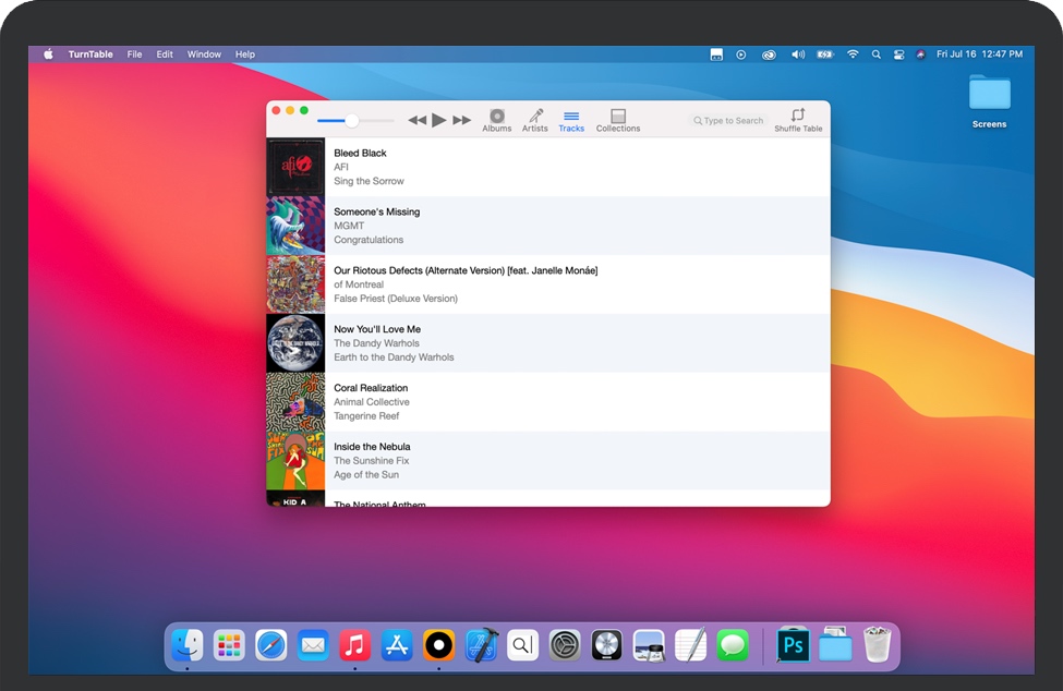 TurnTable for Mac 是一款是革命性的音乐播放器软件。TurnTable适用于艺术家、创意人员和想要更多的人的音乐播放器。TurnTable用于Dreaming、Smoking、Crying、日常娱乐的音乐播放器,用于您的音乐聆听仪式,无论您想要什么。与Apple Music配合使用,完全兼容。您的完整 Apple Music Library 将在 TurnTable 中提供。