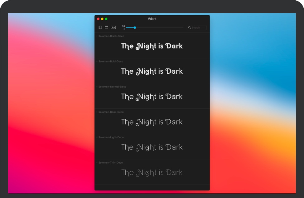 浏览您的图书馆,不受任何干扰。字体可让您通过预览文本和大小的实时自定义来探索所有已安装和导入的字体。