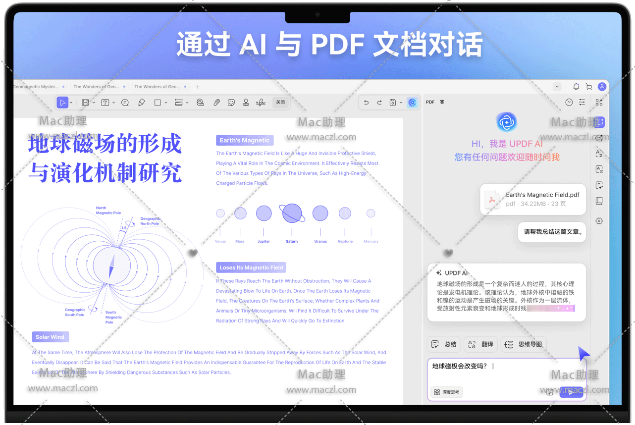 UPDF for Mac 是一款集AI 、阅读、编辑、注释、格式转换、OCR、文档对比等近百项功能于一体的综合型 PDF 编辑软件。具有AI,阅读,编辑,注释、云同步、转换、加密、裁剪、拆分、文档对比等功能。1个账号,全平台都可以使用。UPDF 凭借年轻化高颜值的界面设计让你拥有一个愉快轻松的阅读和办公体验。