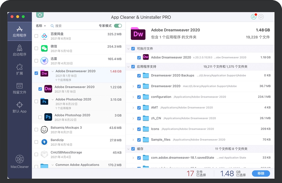 App Cleaner & Uninstaller Pro for Mac 是一款用于完全安全地删除Mac上的应用程序的工具,不会留下任何遗留。该程序查找应用程序的服务和临时文件以及已删除的应用程序的剩余部分,允许您更改和禁用登录项,管理Mac扩展,清理和卸载Mac应用程序。