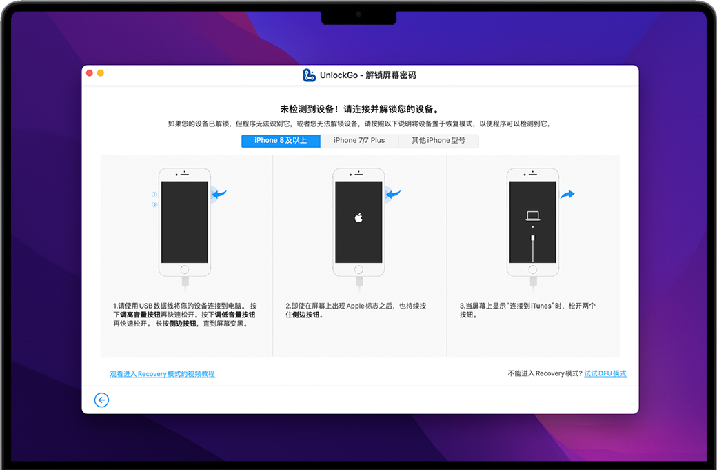 iToolab UnlockGo for Mac 是一款多合一的iOS设备解锁工具。在几分钟内移除iPhone/iPad上的各种锁定。使用屏幕密码锁可以有效地阻止他人侵犯你的隐私,但是当你忘记了你的iPhone屏幕密码时,事情就变得棘手了。幸运的是,UnlockGo可以帮助您轻松地移除所有类型的锁屏锁。iToolab UnlockGo允许您轻松绕过iPhone密码并获得对设备的完全访问权限。它适用于以下场景,并且完全支持各种密码。