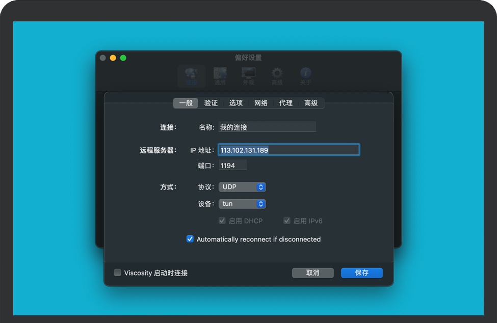 通过设置和连接轻松链接Viscosity,这样您的用户就不必担心。创建简单的可部署连接配置文件