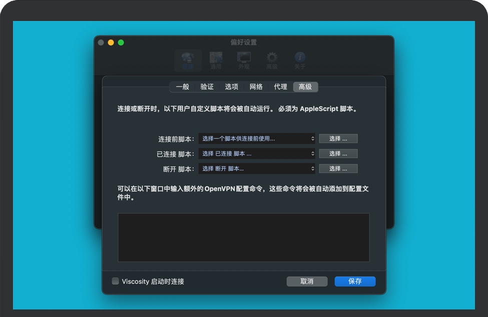 Viscosity提供了丰富的Cocoa图形用户界面,用于创建、编辑和控制VPN连接。Viscosity主要针对VPN新手。它允许通过GUI完全配置连接,无需知道如何使用命令行或 OpenVPN 的配置文件语法。