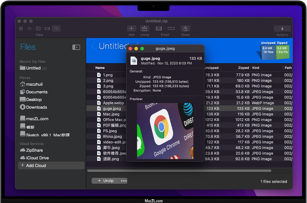 您可能没有意识到这一点,但压缩文件通常包含重复的文件,这增加了zip文件的大小。WinZip Mac使用内部链接检测并压缩重复文件以节省空间。解压缩后的重复文件保持相同的大小和结构,但Zipx文件将比以前更小。