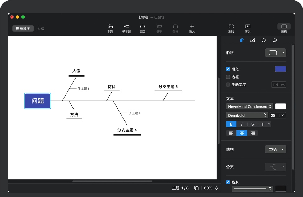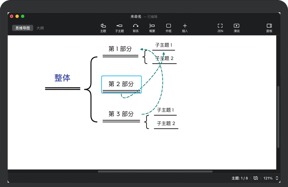 分支自由布局可以避免让自由主题与中心主题的分支产生粘连,在整体运用上更加自由。