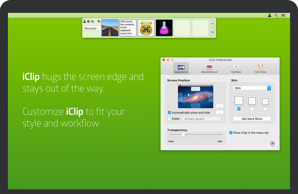 首先,iClip的设计就像Mac的Dock一样易于访问。只需将光标移到屏幕的一侧,iClip就会弹出以立即使用。