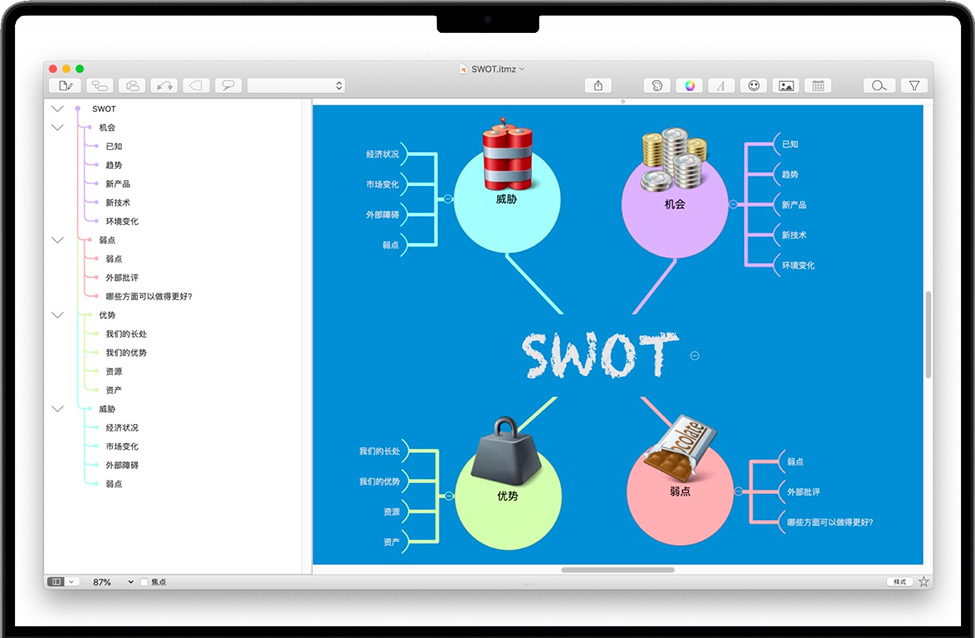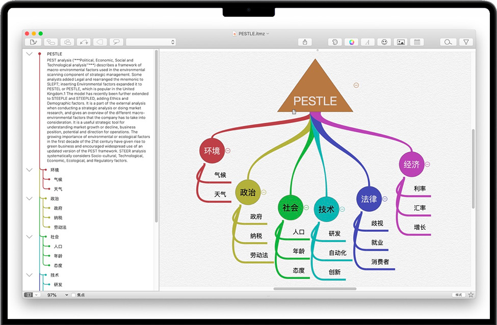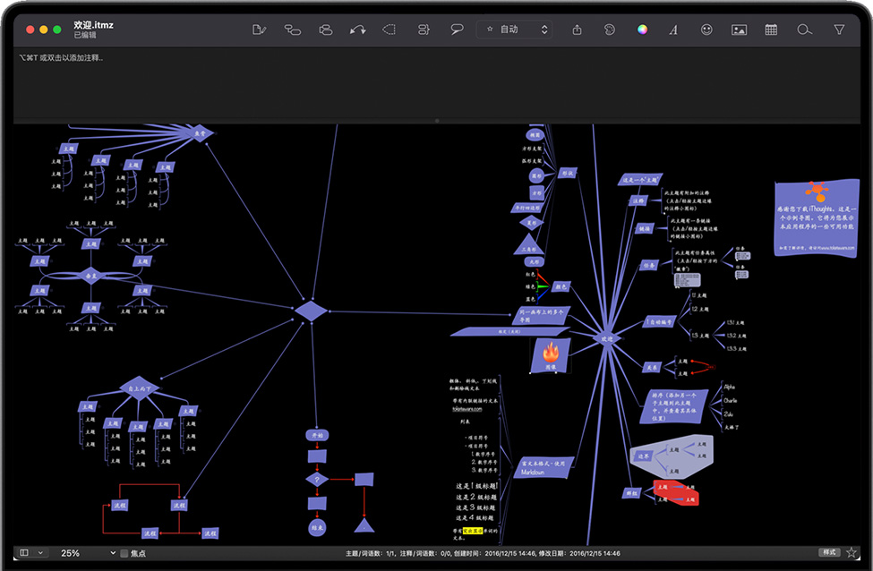 在几秒钟内找到你的路像使用 Mac 上的任何其他应用程序一样使用这款美观、直观的思维导图应用程序。凭借其直观且响应迅速的界面,它支持所有原生 Mac 功能。没有学习曲线,即使是最缺乏经验的思维导图师也可以自信地立即开始他们的第一个项目。 |