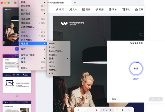 打开扫描文档进行编辑时,需要使用PDFelement执行OCR功能(光学字符识别)。