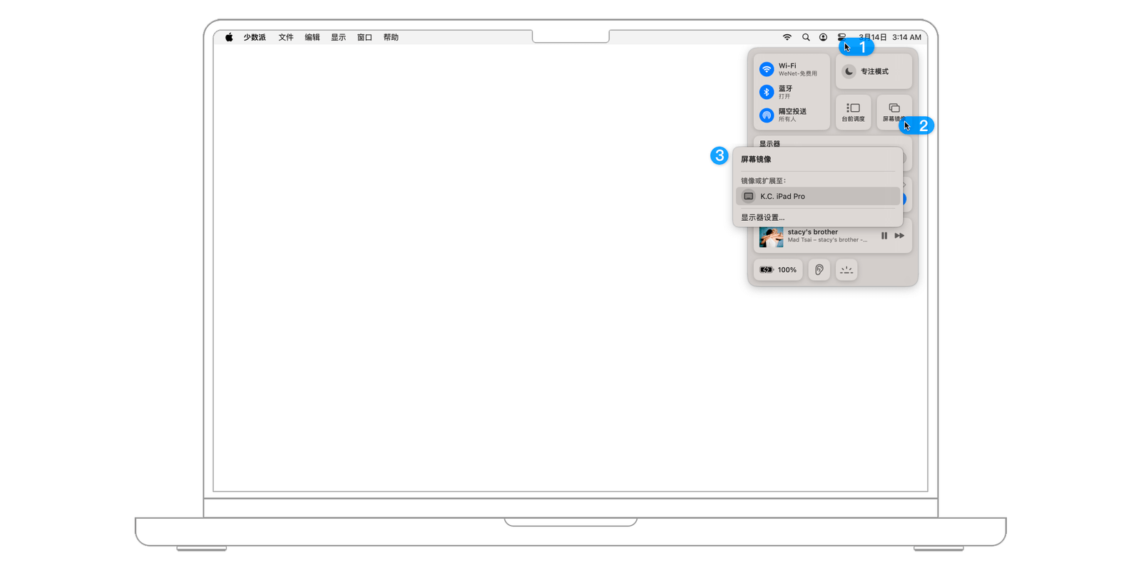 要使用隔空播放,你需要将 HomePod、Apple TV 或支持此功能的智能电视等接收设备,与你的 Mac、iPhone 等苹果设备连接到同一个 Wi-Fi 网络。连接成功后,隔空播放功能便会自动启用。