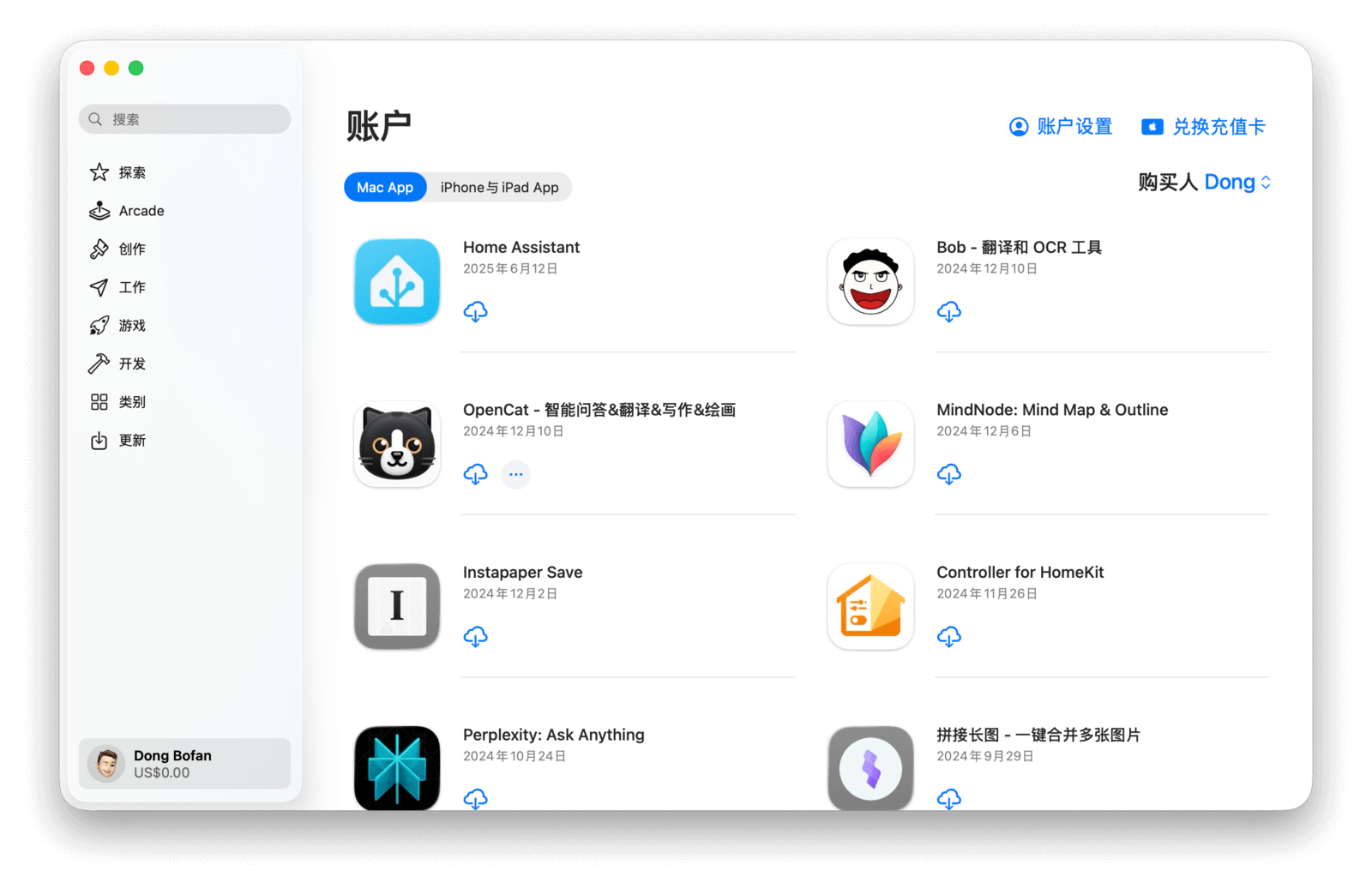 如果你的 Mac 需要重新安装软件,对于已经购买或下载过的应用,可以直接从「已购项目」页面下载,这样可以快速找到所需应用,免去逐个搜索的麻烦。