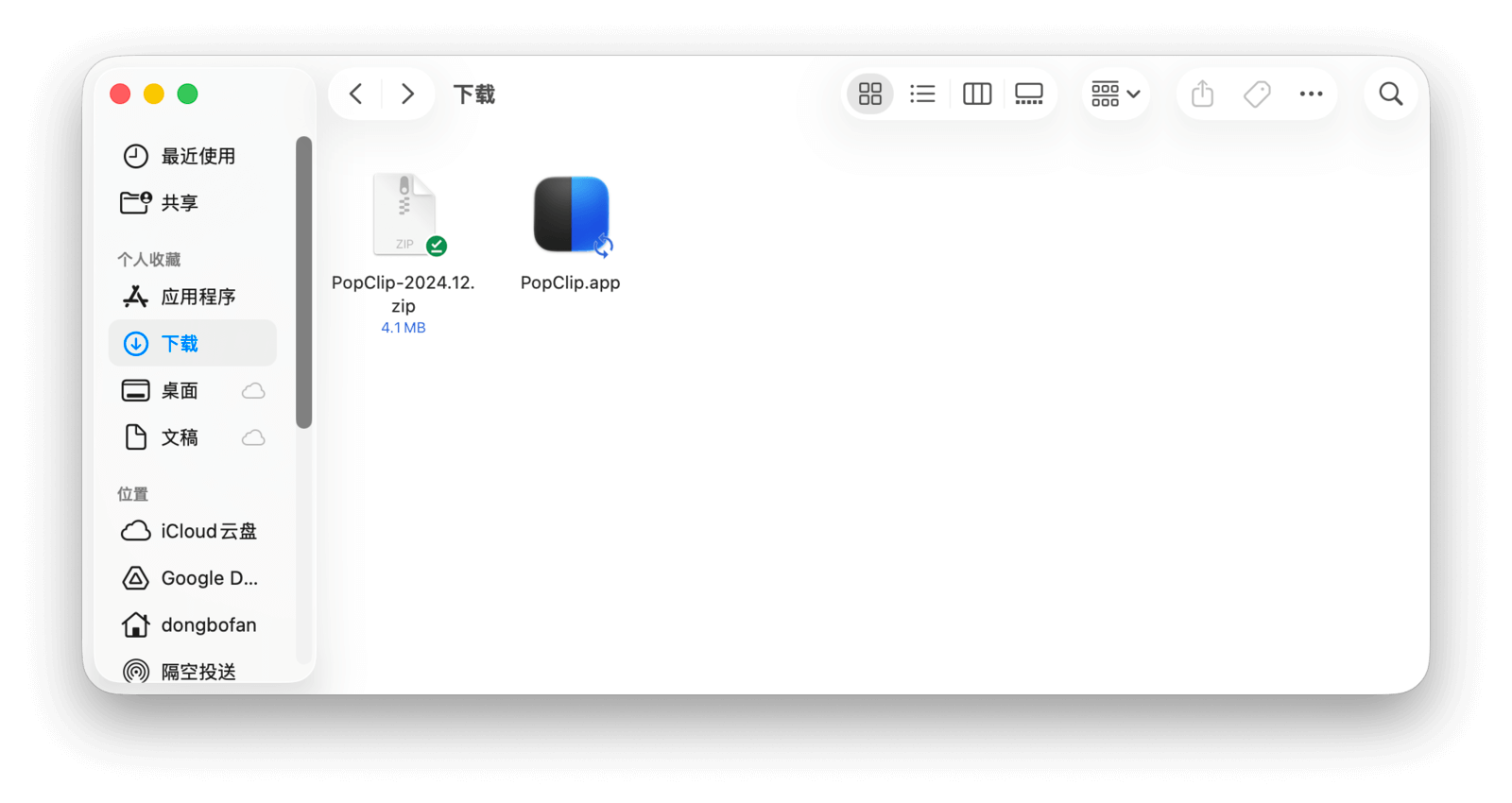 因此,zip 和 dmg 格式的安装包,本质上就是将 .app 程序主体打包压缩在里面。通过解压或挂载磁盘映像,就能看到程序本体,再将其拖入「应用程序」文件夹即可完成安装。下面就来实际操作一下。