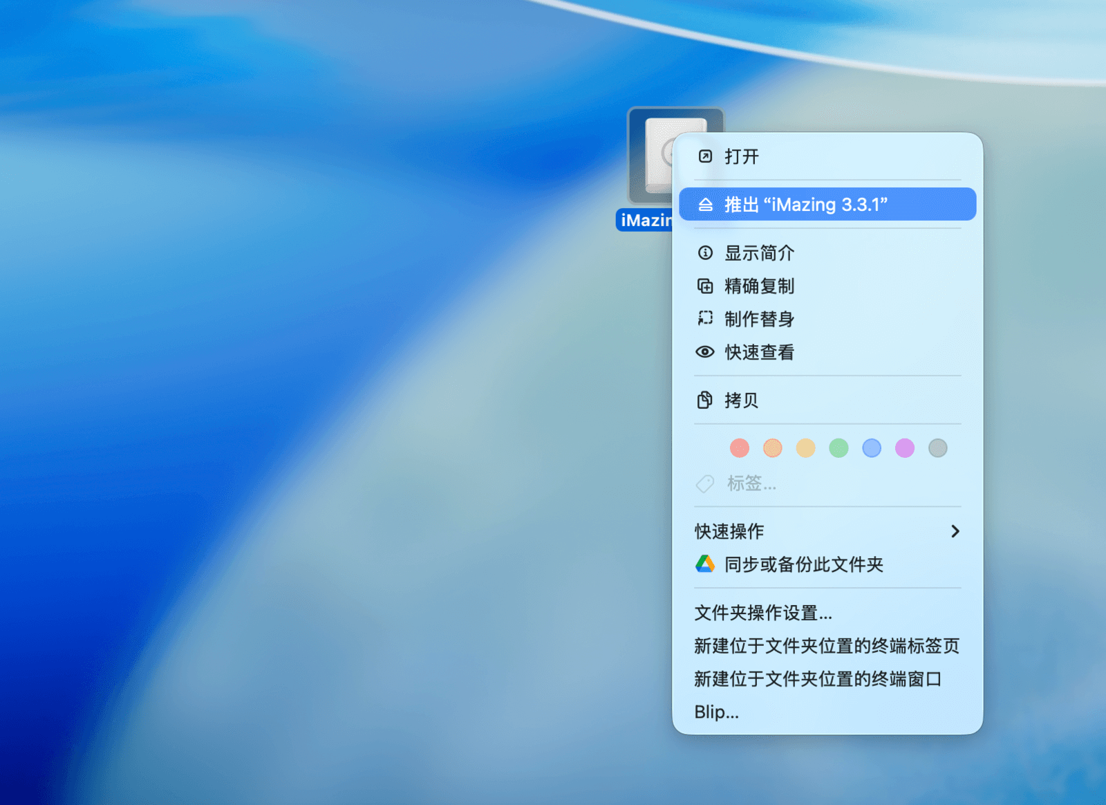 注意,此时只是将程序复制到了系统中,原来的 dmg 文件和挂载的磁盘映像仍然存在。为了不占用磁盘空间,可以点击访达左侧「位置」标签下磁盘映像旁的「⏏︎」符号,将其推出。然后再前往「下载」文件夹删除 dmg 文件,这样才算完成了安装包的清理。