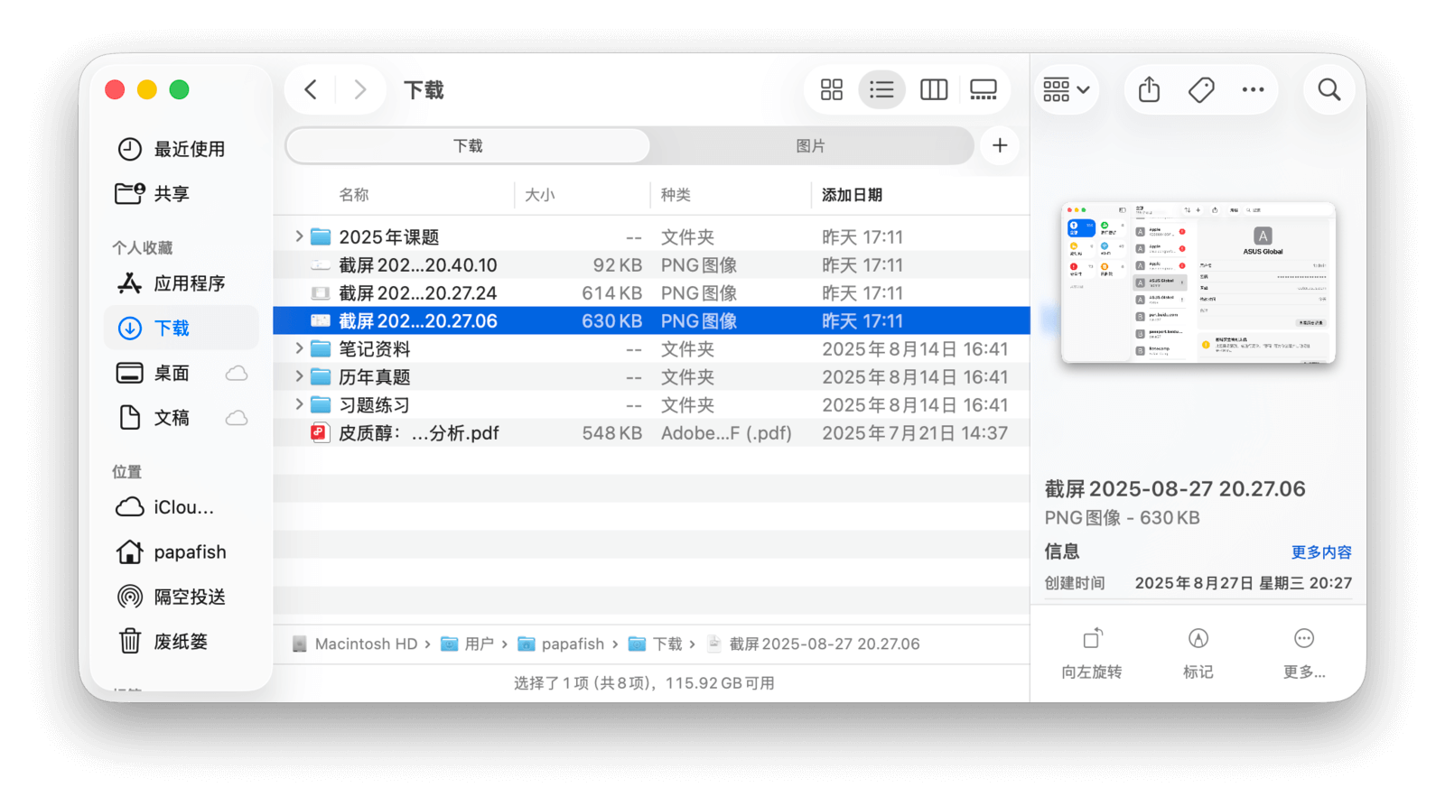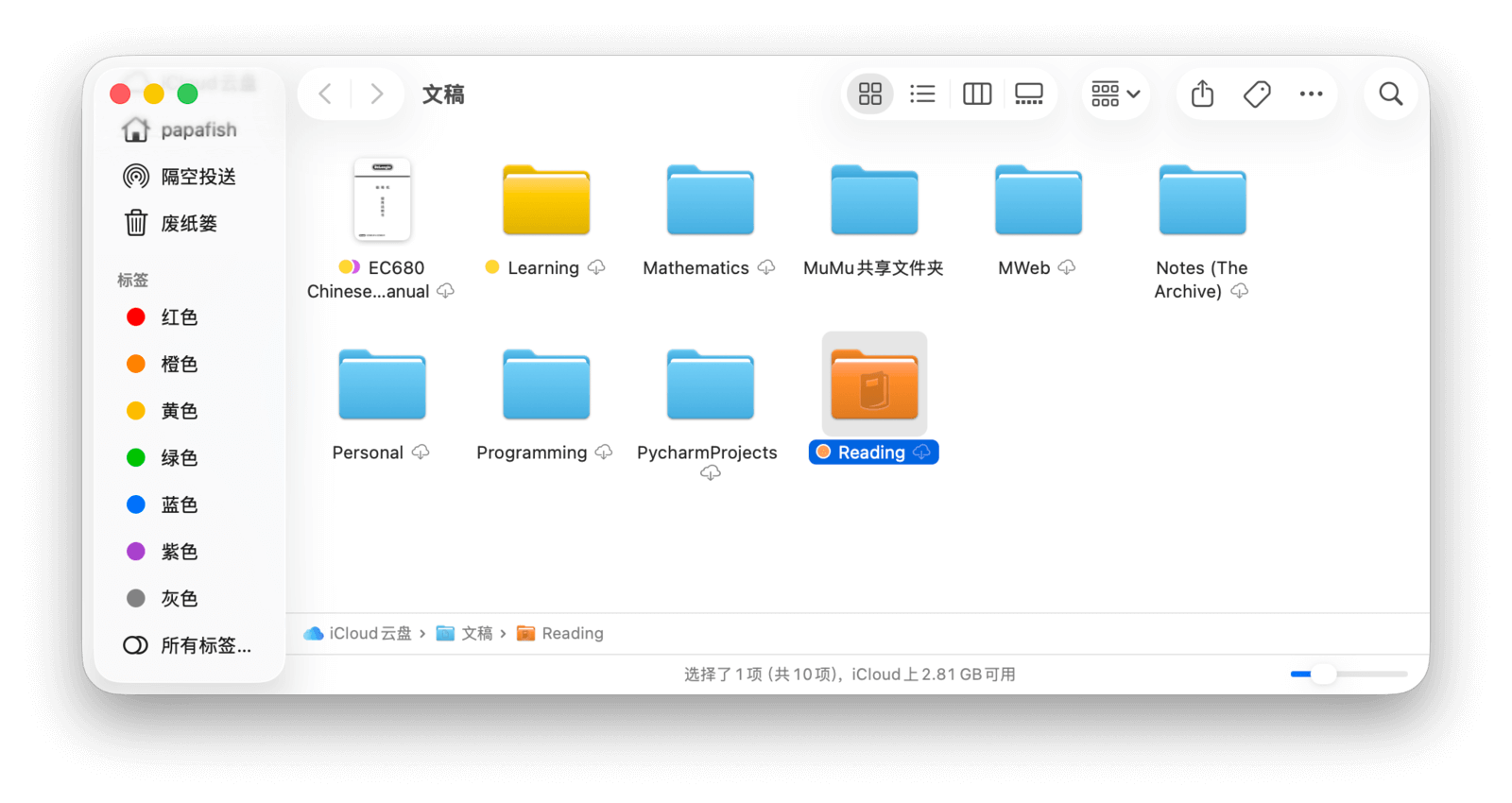理解了所有文件都关联在系统文件树上这一点,就能看破许多软件界面的「障眼法」。例如,「访达」侧边栏的「个人收藏」,其实就是指向文件树中真实位置的快捷方式。甚至 iCloud 云盘中的文件,也同样位于文件树之中,其真实路径通常在 /Users/用户名/Library/Mobile Documents 文件夹下。