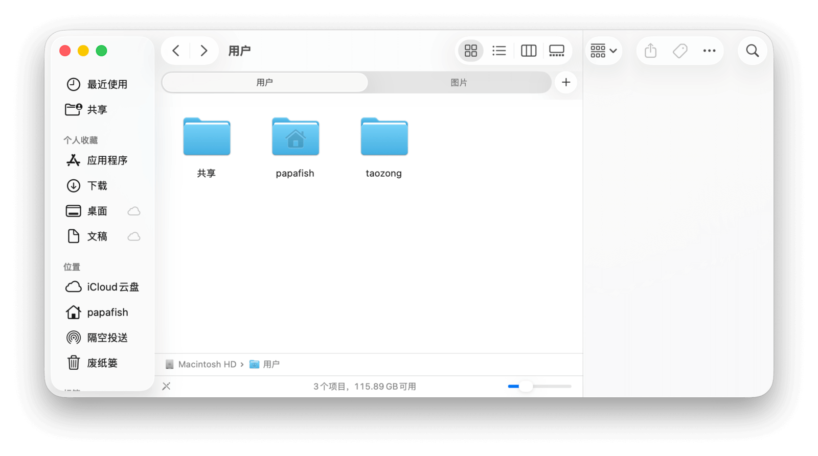 你可能已经注意到,要访问某些个人文件夹,需要一层层点击才能到达。为了简化操作,你可以将常用文件夹添加到「访达」边栏的「个人收藏」中,实现「一步到位」。