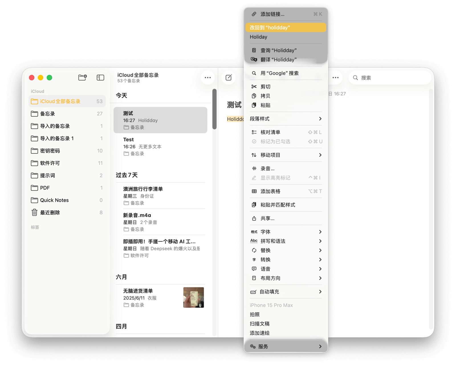 在 macOS Sonoma 中,这项功能得到了增强。首先,自动纠正的文本会临时添加下划线,让你对修改之处一目了然。其次,系统还提供了撤销功能,如果自动纠正的结果不符合你的预期,可以轻松恢复原文。目前,这两个增强功能仅支持英语、法语、德语等语言,中文暂不支持。