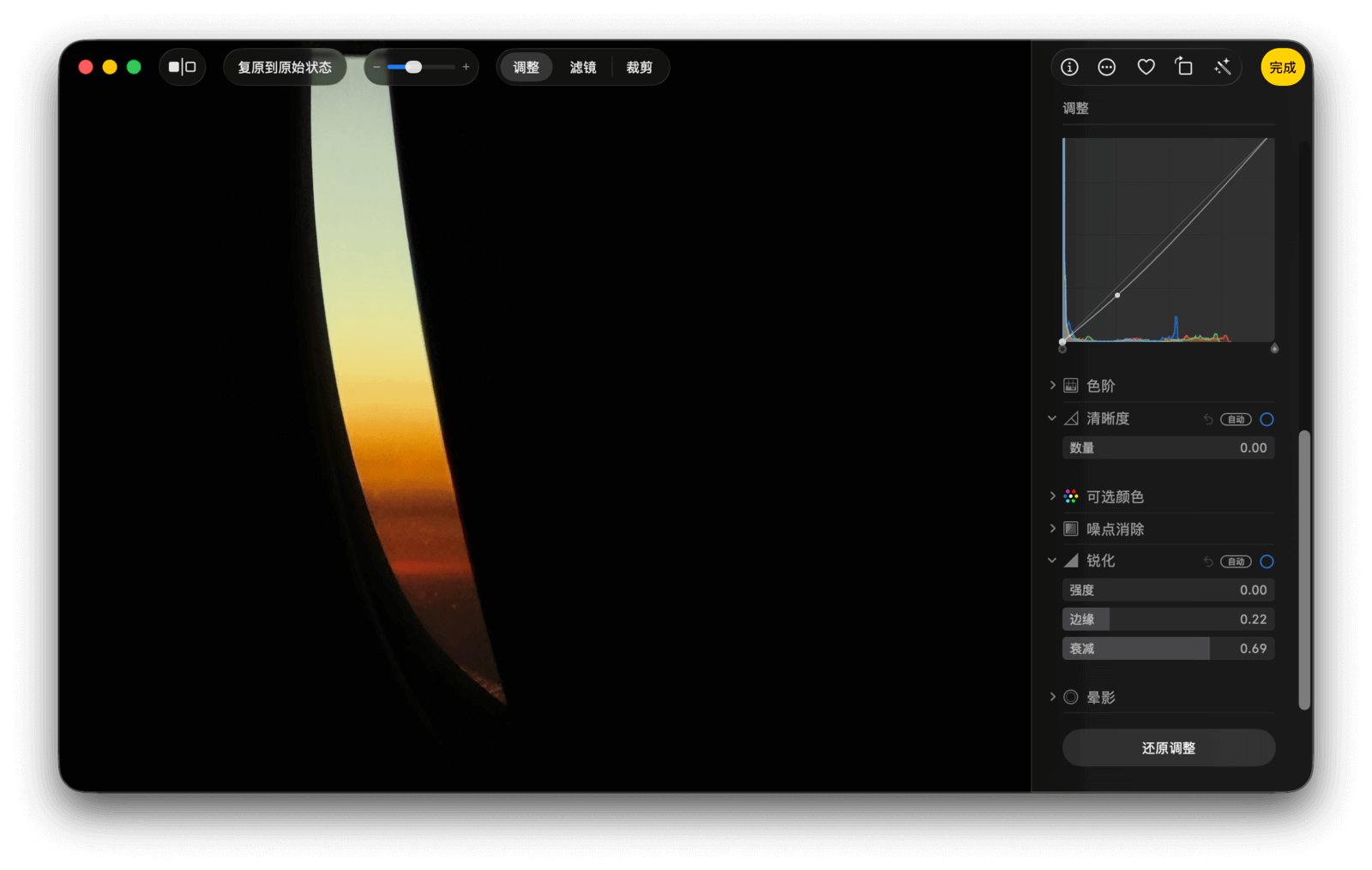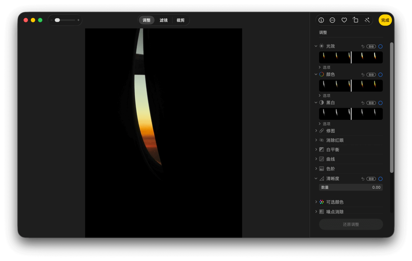 如果你对调整结果不满意,可以点击调整面板最下方的「还原调整」按钮,将照片复原。