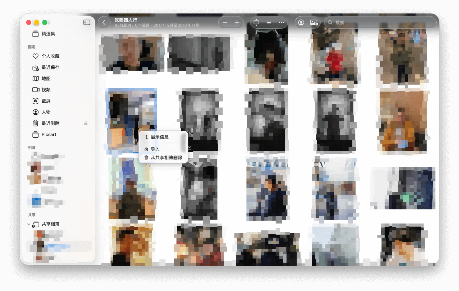 开启后,照片应用的侧边栏中会出现「共享」模块。在这里,你既可以与亲朋好友分享自己的精彩瞬间,也能浏览他们分享的美好点滴。