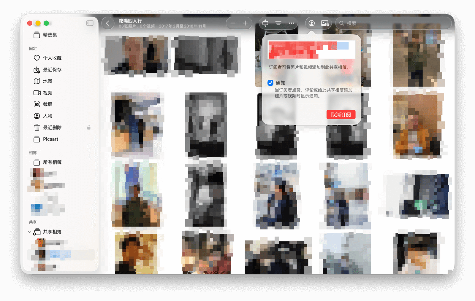 在任意共享相簿的右上角都有一个头像按钮,点击后即可管理该共享相簿的各项权限。