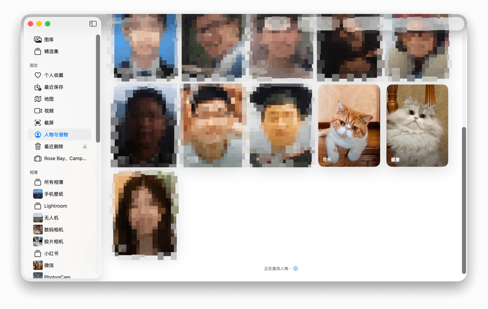 在 macOS Sonoma 中,苹果还为猫和狗等宠物加入了智能识别功能。以我家的两只猫为例,不管是 4 岁大的加菲猫,还是 4 个月大的米努特猫,都成功被照片应用识别了出来。