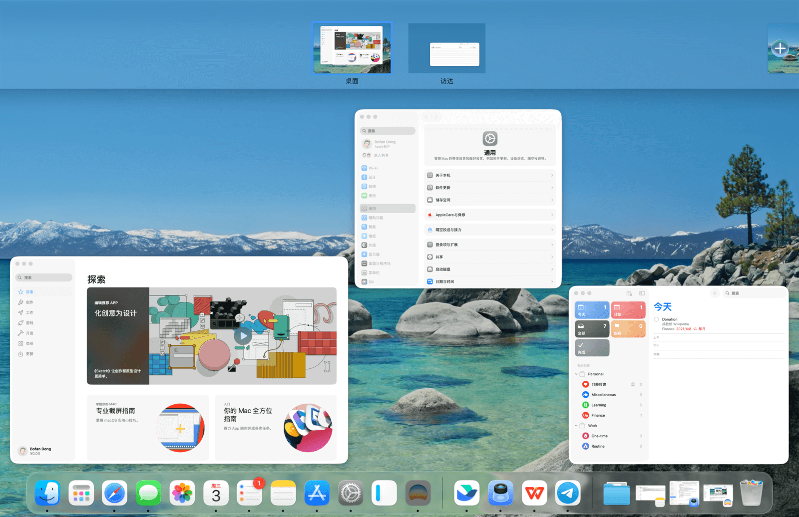 此时,可以通过打开「调度中心」来新建虚拟桌面,从而合理地分配各个应用程序窗口。