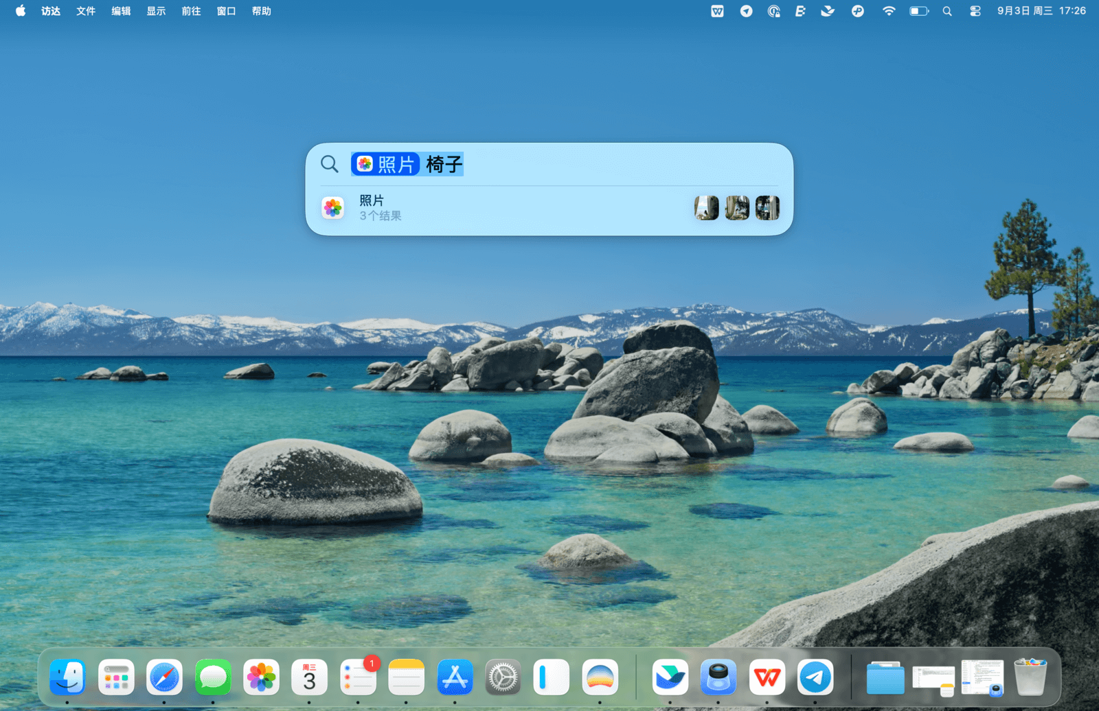 在 macOS Ventura 中,聚焦的搜索能力更上一层楼,现在可以利用照片、信息、备忘录和访达中的图像信息,根据照片的位置、场景或图像中的文本、物体来进行搜索。