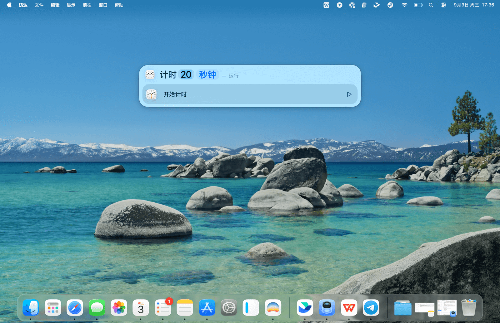 例如,我想通过聚焦设置一个 20 秒的倒计时,只需在搜索栏输入「计时」,选中「开始计时」并按下回车键,就可以在弹出的窗口中自定义计时器的时间和单位。
