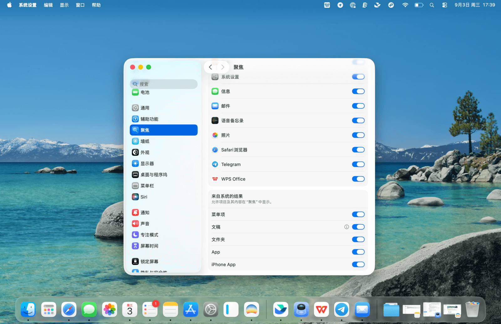 要配置聚焦的搜索功能,可以前往「系统设置 > 聚焦」。
