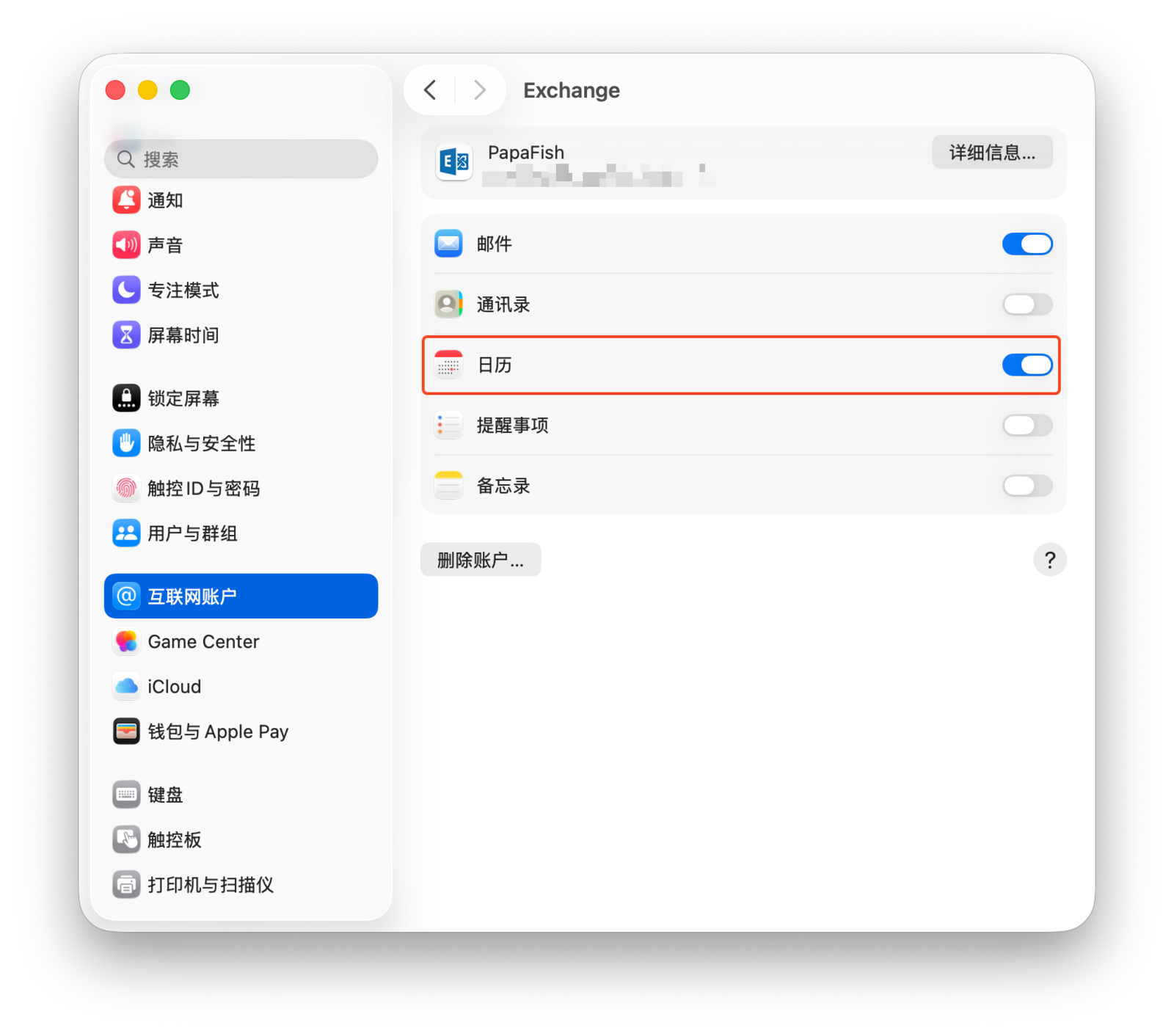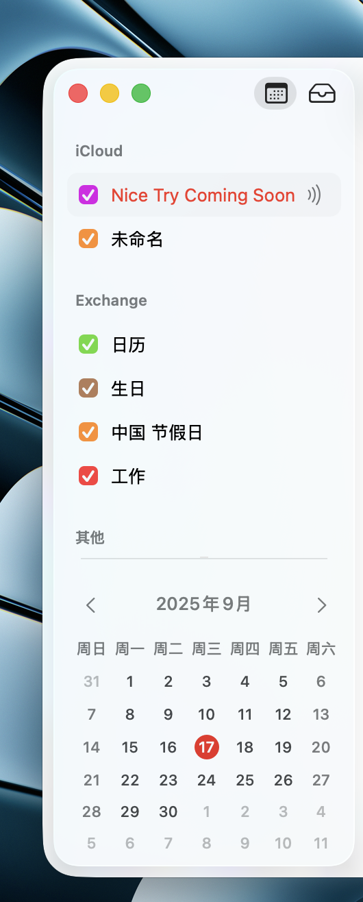 当然,除了 iCloud 日历,你也可以添加其他账户,如 Google 日历、Outlook 等。只需在「系统设置 > 互联网账户」中添加相应账户,并确保开启日历同步选项即可。