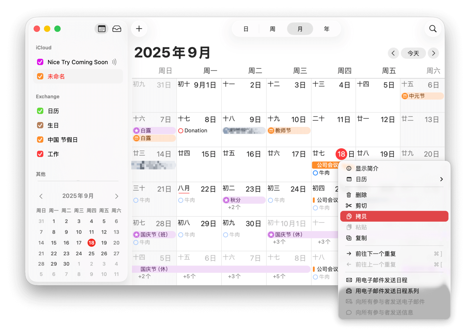 日程创建后,管理起来也很方便。你可以直接拖动日程块来调整时间,或拖动其边缘来改变持续时长。双击日程可打开编辑窗口修改详细信息,右键单击则可进行复制、剪切、删除等操作。