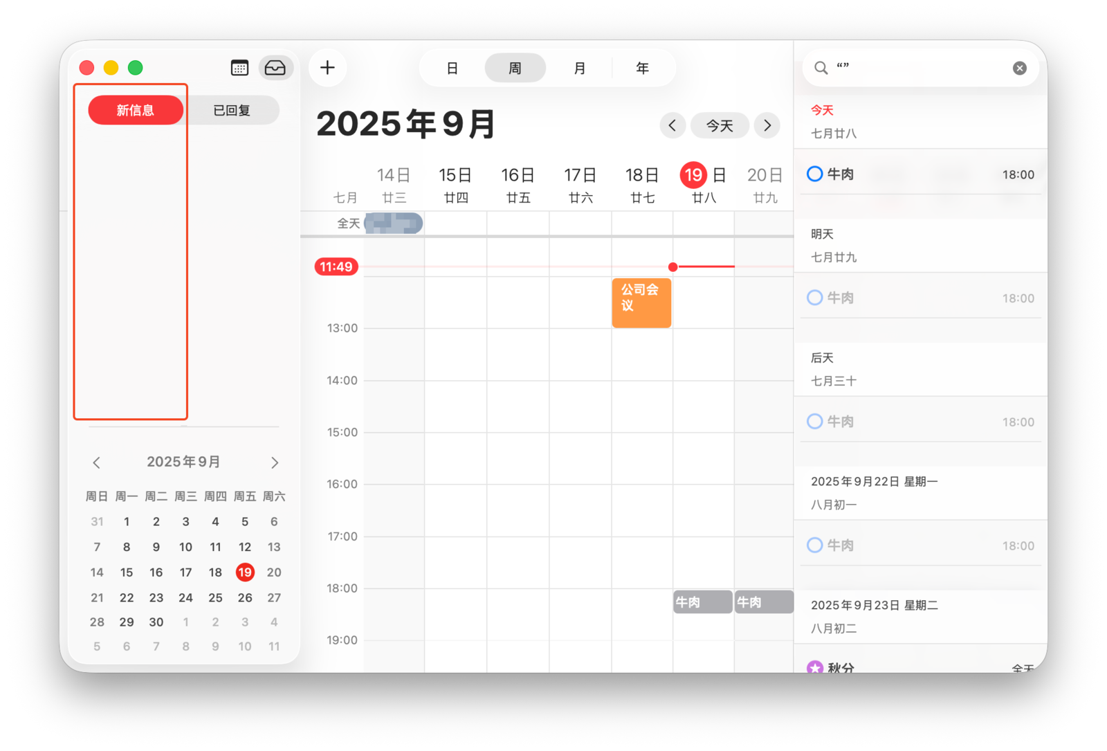 收到邀请后,你可以点击「日历」窗口左侧边栏的「收件箱」按钮来查看并回复。