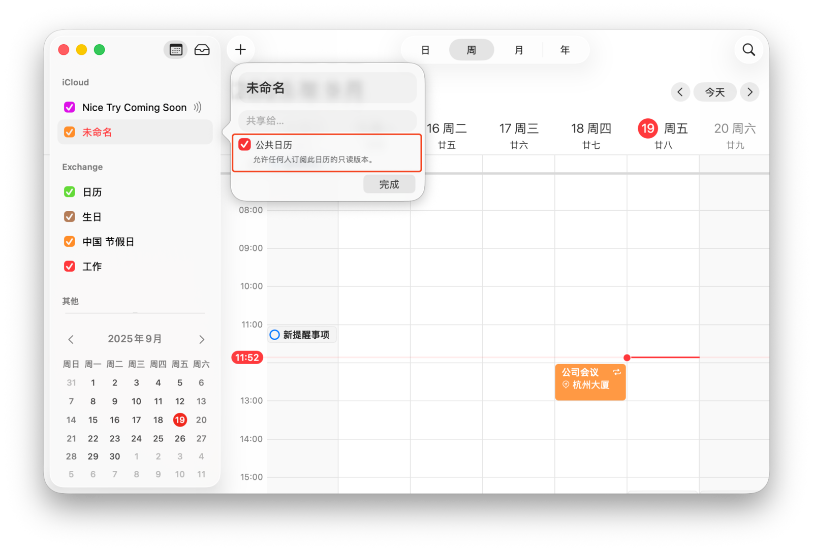 收到链接的人可以在任何兼容的日历应用中订阅(不限于苹果「日历」),但他们无法修改日程。如果你只想单向展示自己的日程,而不是协同管理,那么「公共日历」是更合适的选择。
